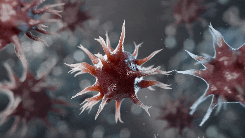 수지상세포와 T세포의 상호작용을 통해 T세포 분화 과정을 시각화한 메디컬 애니메이션입니다.