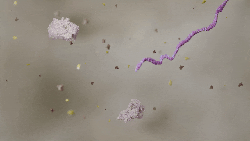단백질 합성 과정을 전사와 번역 단계로 나누어 직관적으로 시각화한 3D 콘텐츠입니다.