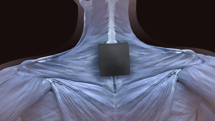 제품이 인체에 접촉했을 때 발생하는 열 에너지의 전달 과정과 자기파가 신체에 작용하는 원리를 단계적으로 시각화하여, 근육 이완 및 척추 주변의 긴장 완화 과정을 이해하기 쉽게 표현했습니다.