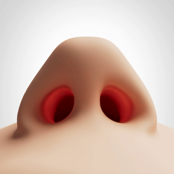 제품이 비강 내부 공간을 확장시키는 과정을 정밀하게 표현하고, 공기가 코 안으로 유입되고 배출되는 흐름을 시각적으로 구현했습니다.